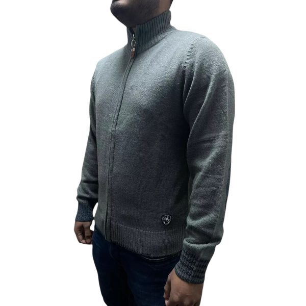 Men’s Greenland Full Zip Sweater in a tight-knit style with long sleeves and a funnel neck.